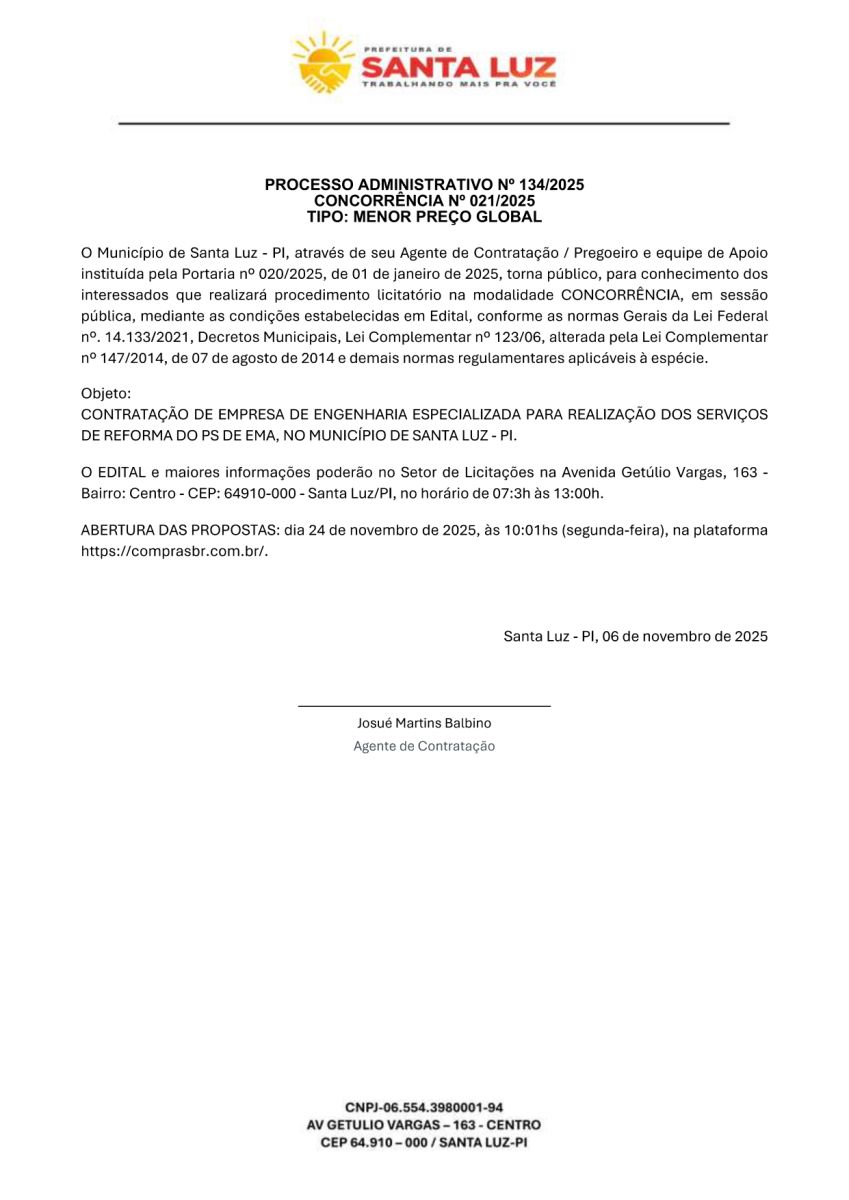 PREFEITURA MUNICIPAL DE SANTA LUZ