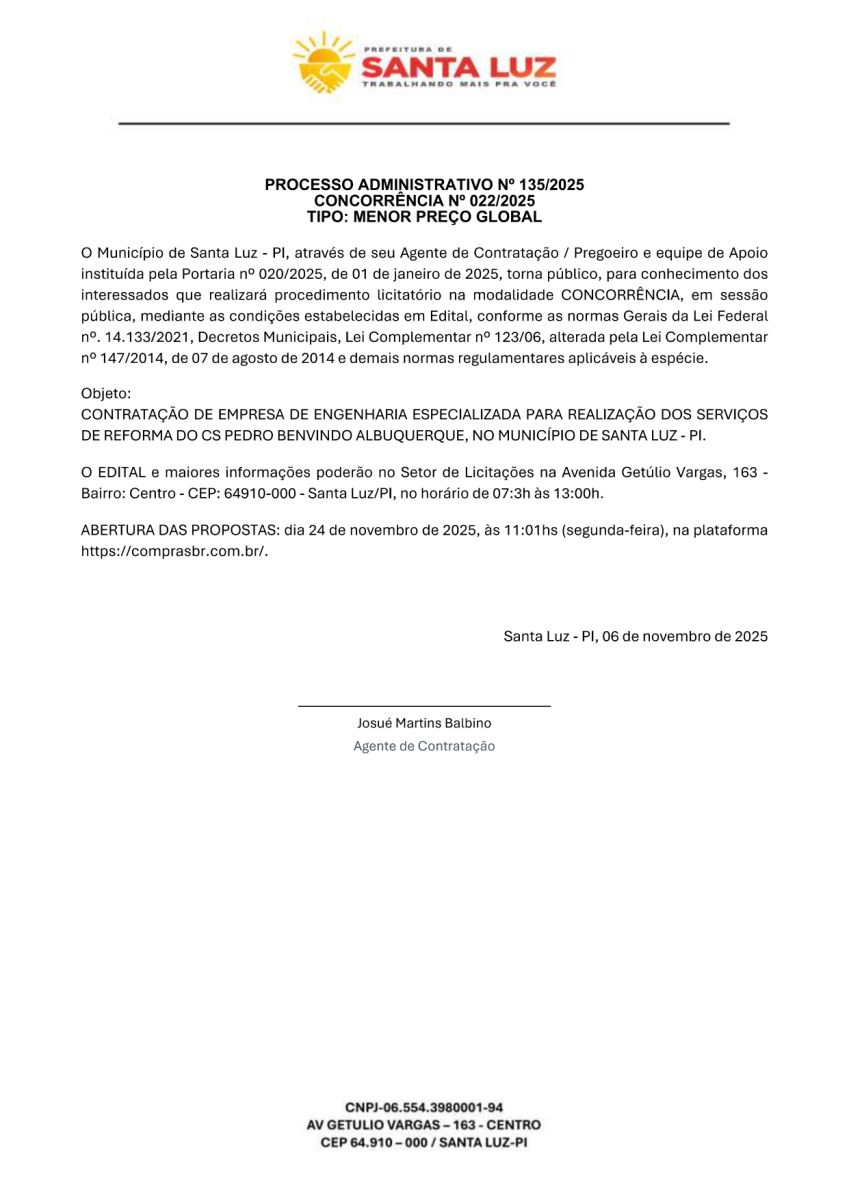 PREFEITURA MUNICIPAL DE SANTA LUZ