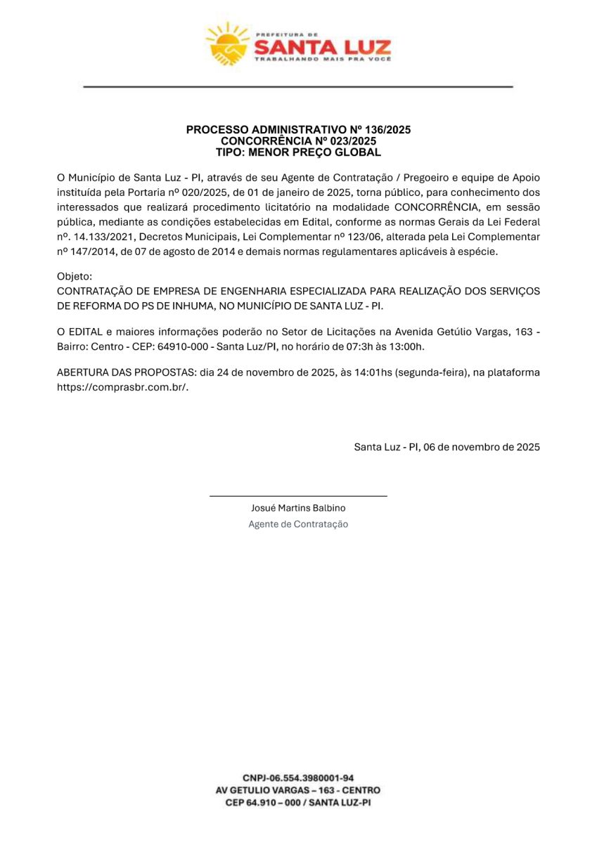 AVISO DE CONCORRÊNCIA Nº 023/2025