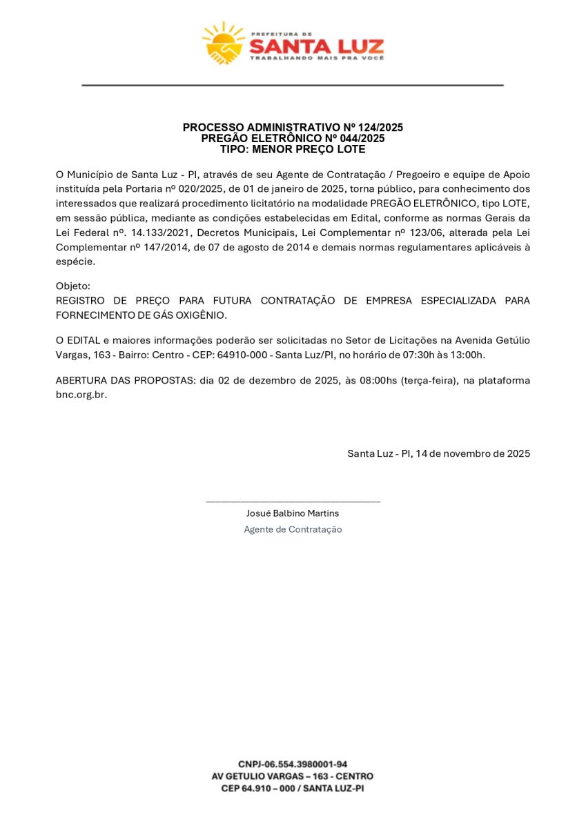 AVISO DE PREGÃO ELETRÔNICO Nº 044/2025
